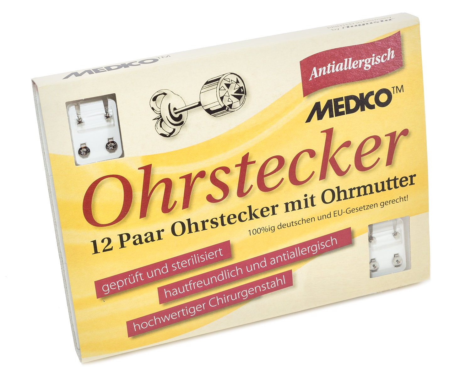Medizinische Erstohrstecker, mit Ohrmutter, aus antiallergischem Stahl - nickelabgabefrei. Geprüft und sterilisiert. Farbe: silber , Form: Stern , VE = 12 einzeln verpackte Paare.