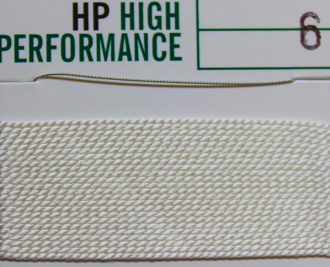 Seiden- und Nylonfäden können reißen, wenn beim Knoten ihre maximale Belastbarkeit überschritten wird. High Performance Perlseide ist dagegen nahezu unzerreißbar und das schon in den kleinsten Durchmessern. Der 2 m lange Kordelfaden ist mit 2 Nadeln versehen. HP-Seide - Farbe: weiß - Nr. 4 = Ø 0,60 mm