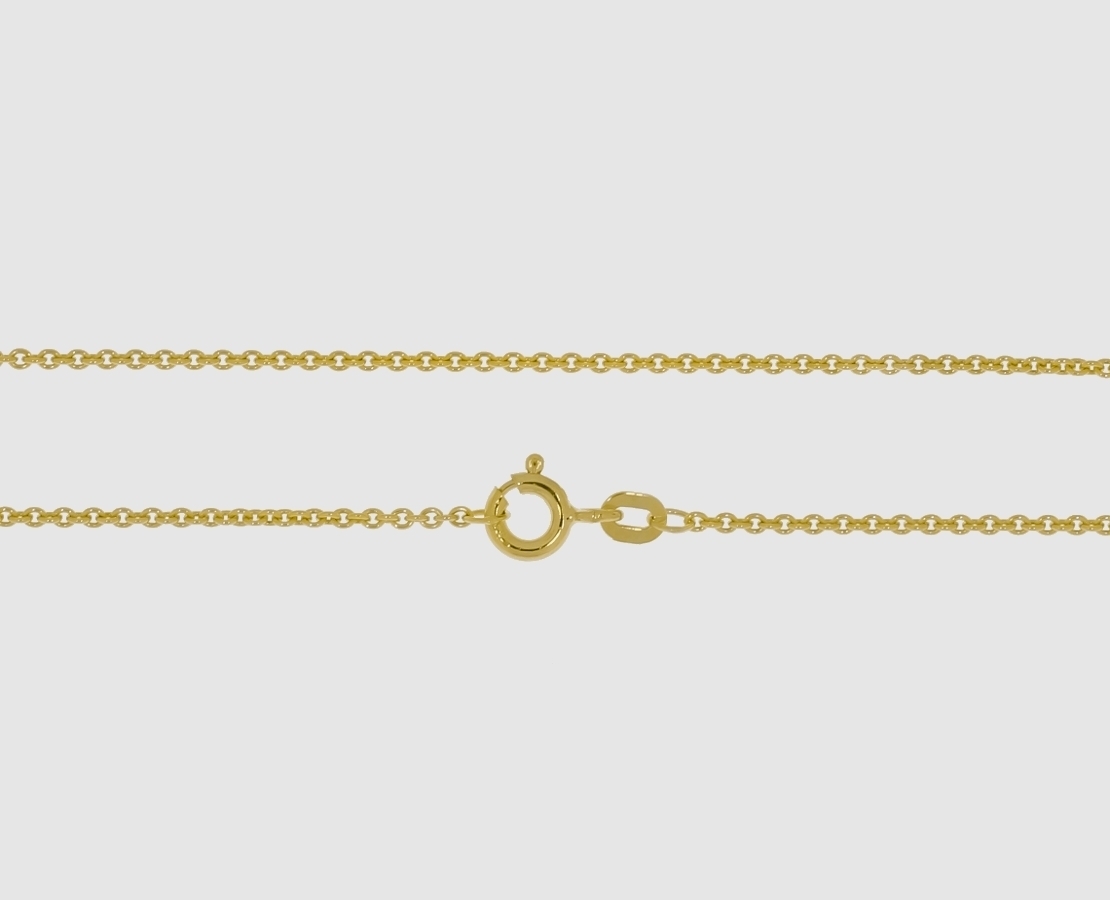 Klassische Rund-Ankerkette, mit Ösenbreite 1,1 mm, aus 585 Gelbgold. Die Collierkette hat eine Länge von 42 cm und ist mit einem Federring versehen.