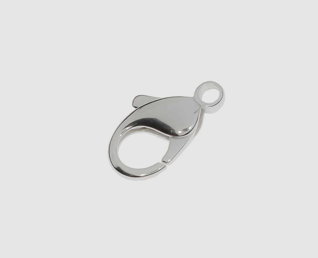 Gewölbter Karabiner mit fester, geschlossener längs-Öse, aus 925 Sterling Silber, Größe 17 mm.