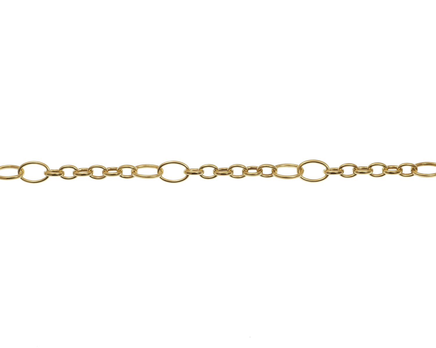 halbmassive Fantasiekette mit ovalen Kettengliedern, 2 verschiedene Größen 7,8 x 5,6 mm und 12,0 x 8,3 mm , aus 585 Gelbgold. Drahtstärke: 1,4 mm Meterware/Zuschnitt = vom Umtausch ausgeschlossen.