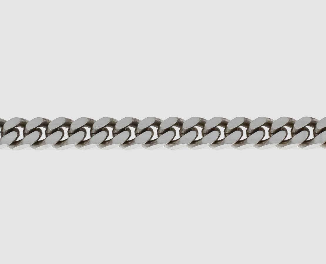 Panzerkette 4-fach-diamantiert, aus Sterling Silber. Kettenglieder 5,6 x 2,8 mm. Materialstärke: 1,7 mm - Meterware/Zuschnitt = vom Umtausch ausgeschlossen.