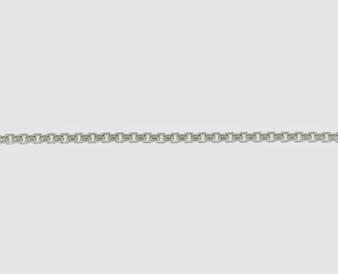 Runde Venezianer Kette aus Sterling Silber. Die Kettenglieder sind aus gerundetem Flachdraht. Kettenstärke 2,0 mm. Meterware/Zuschnitt = vom Umtausch ausgeschlossen.
