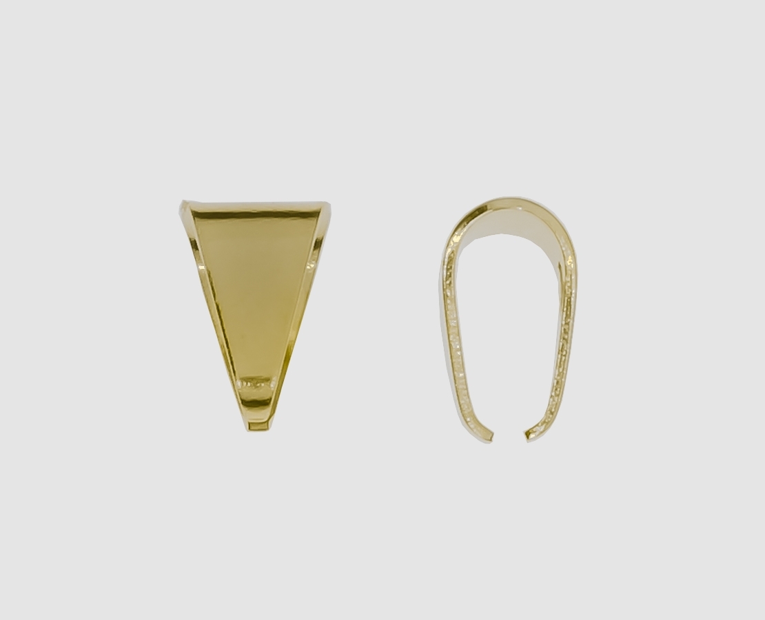 Offene, glatte Ösen-Schlaufe, aus 333 Gelbgold, für Anhänger. Höhe 9,0 mm, Breite oben 6,0 mm und unten 1,3 mm.