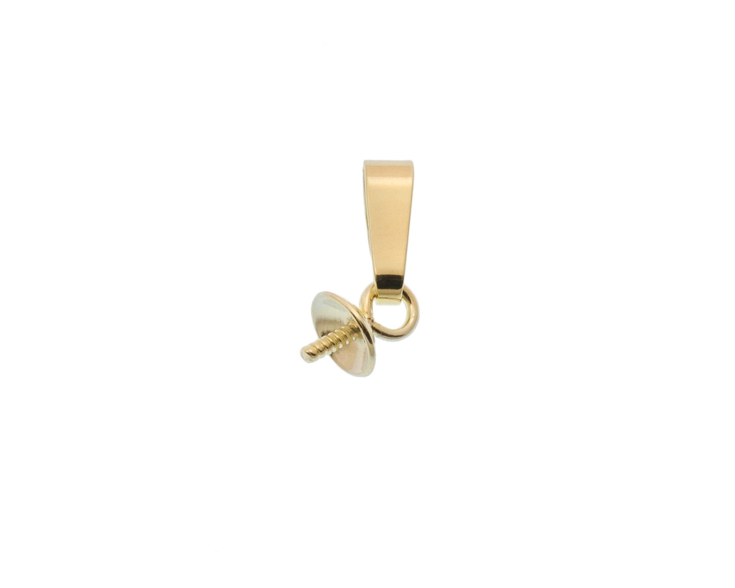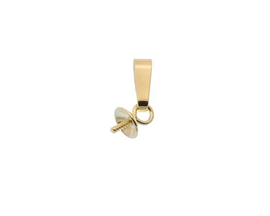 Glatte Anhänger-Ösenschlaufe, aus 333 Gelbgold -offen/Enden überlappend- Höhe 7 mm, Breite oben 2 mm und unten 1 mm - mit angehängter, glatte 5mm Perlschale. Abbildung ähnlich