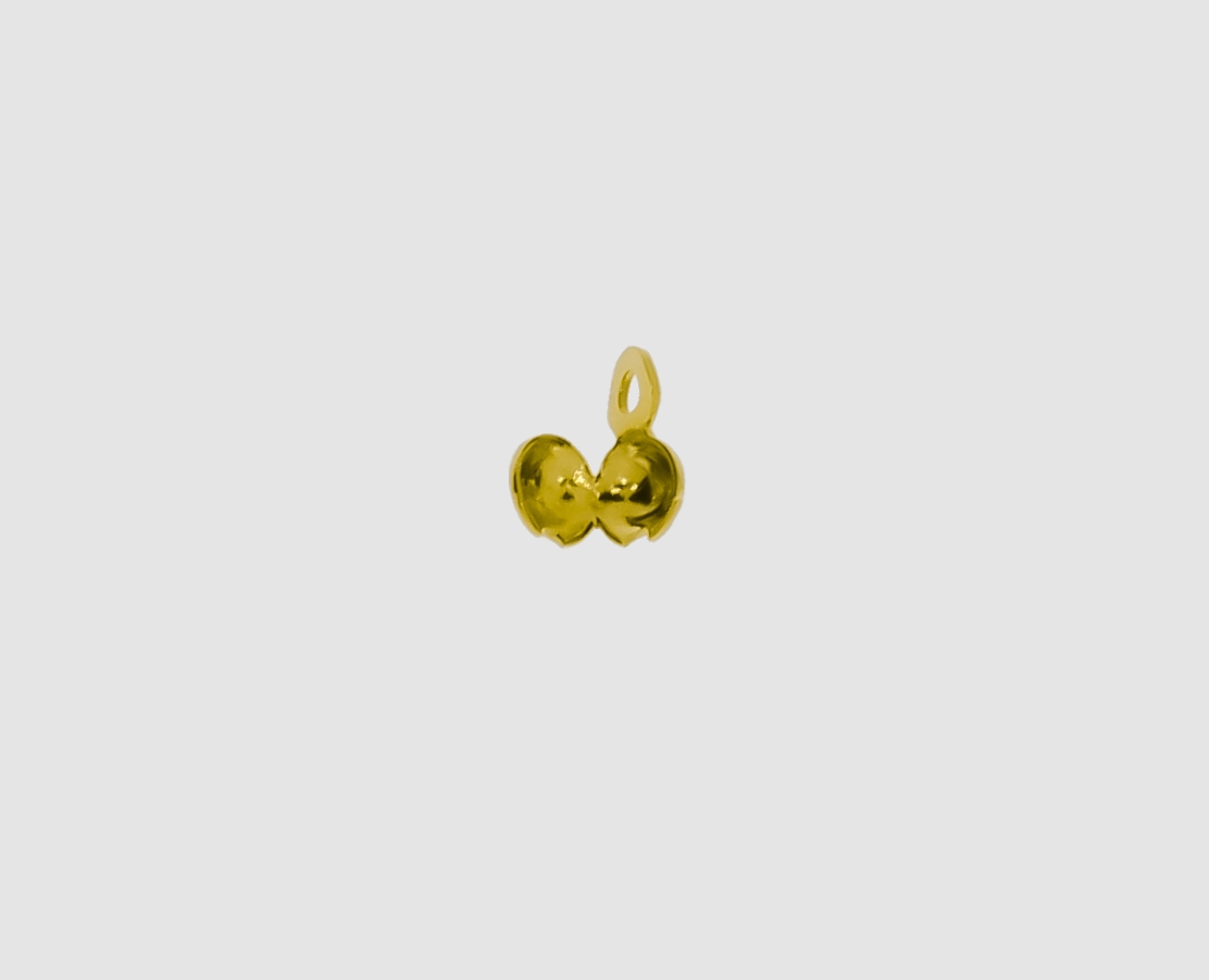 Schlichte Klapp-Kapseln mit geschlossener Öse aus 925 Silber vergoldet, zum fixieren und verdecken der Perlseide Endknoten. 3,0 mm