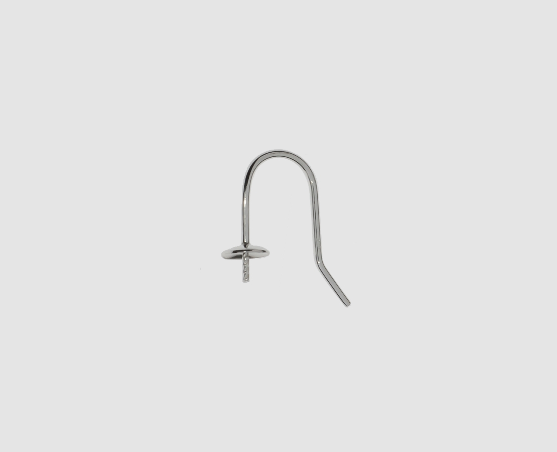 Schlichter Ohrhaken mit feststehender, glatter Perlschale aus Sterling Silber. Gesamtlänge: 20 mm. Bügelbreite: 9 mm. Drahtstärke: 0,8 mm. Perlschale Ø 5 mm.