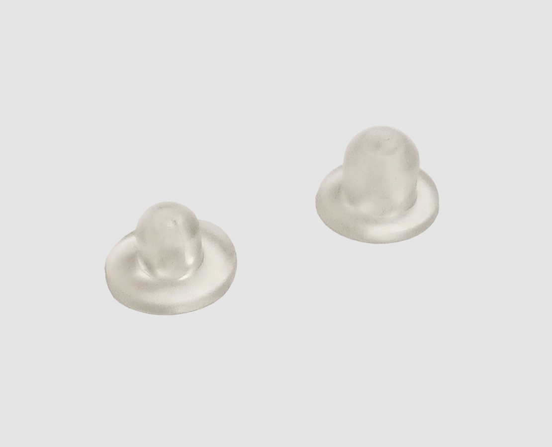 Transparente, weiche Silikon-Stopper für Ohrclips als Druckschutz für das Ohr. Ø 5,5 mm / Teller Ø 9,0 mm