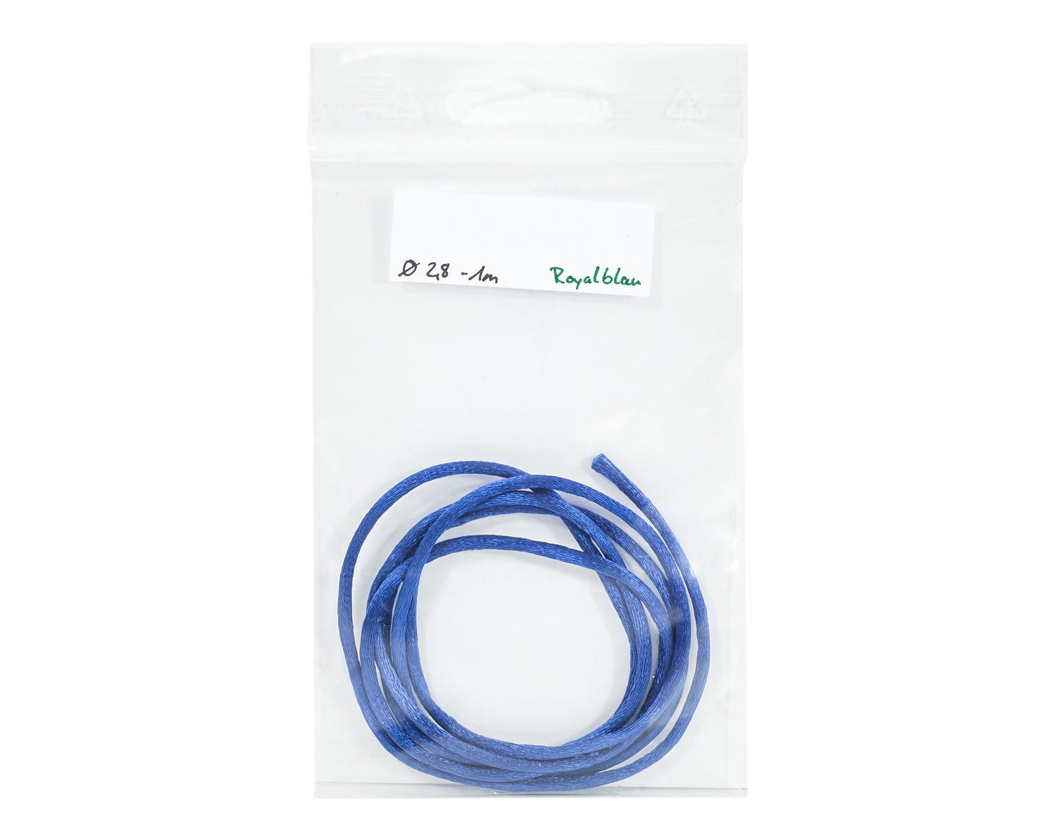 Glänzendes Stoffband (kein Nylon !) Ø 2,8 mm -ROYALBLAU- Passende Silber- Endkapseln Art.Nr. 93511435 oder -Bajonett-Verschluss Art.Nr. 93513035