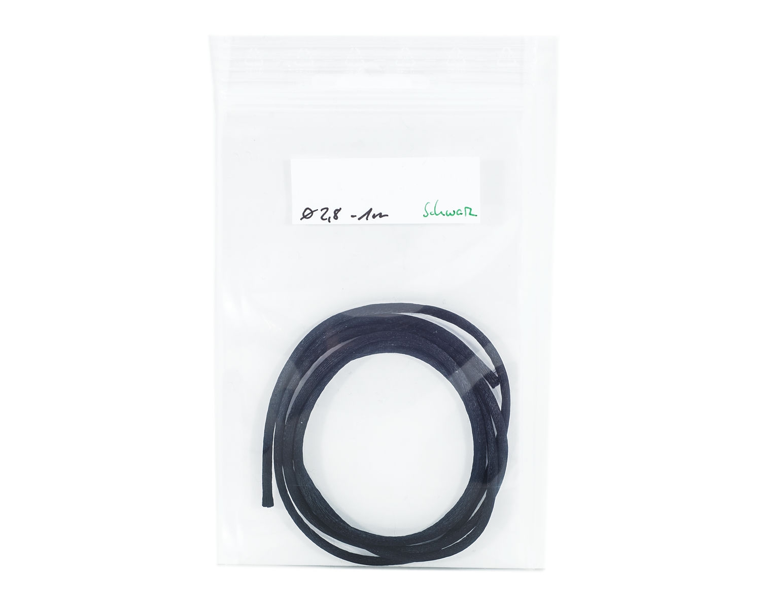 Glänzendes Stoffband (kein Nylon !) Ø 2,8 mm -SCHWARZ- Passende Silber- Endkapseln Art.Nr. 93511435 oder -Bajonett-Verschluss Art.Nr. 93513035