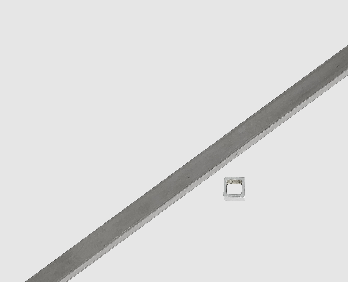 Quadratisches Scharnier-Rohr, 5x5 mm ; Wandstärke: 0,5 mm - aus 750 Palladium-Weißgold. 750/1000 Anteile Gold, 160/1000 Anteile Palladium. Fugenlos gefertigt. Meterware/Zuschnitt = vom Umtausch ausgeschlossen.